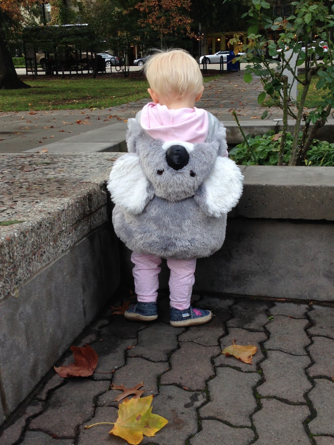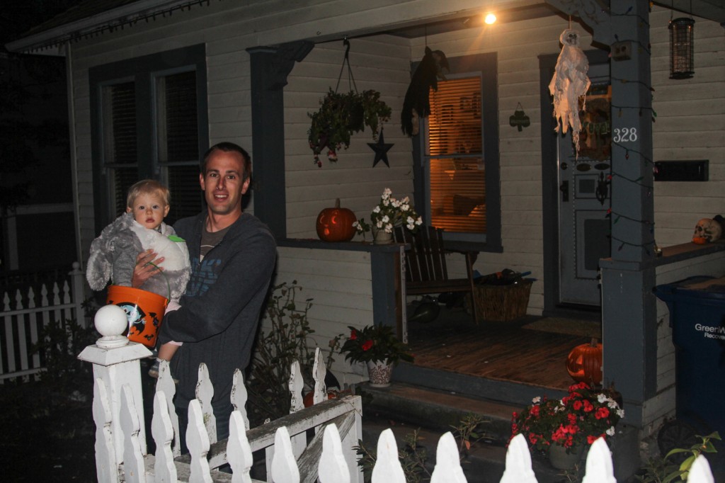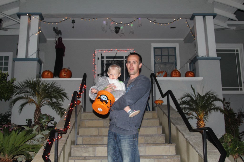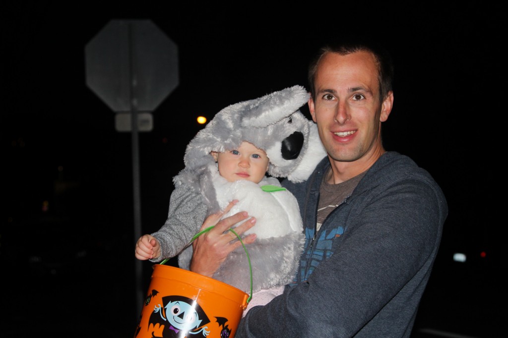 We were hoping to hit up downtown Petaluma for their afternoon trick or treat trail, but it was smack dab in the centre of nap time, so we passed on it, but then we learned that trick or treating wasn’t really on the agenda in the park tonight. Over dinner we decided that just wouldn’t do, so we took off spur of the moment to find a neighbourhood to take Rylie for her first Halloween. Luckily we found one about 10 minutes away with some beautiful Victorian style homes. Mostly, older people lived there, so we didn’t see too many kids, but enough for her to see what Halloween is all about. The people were also very friendly and welcoming to us and they liked her Koala costume. There was no kissing booth for Nixon this year at our front door, as he got to join us and enjoyed his first trick or treating experience as well.