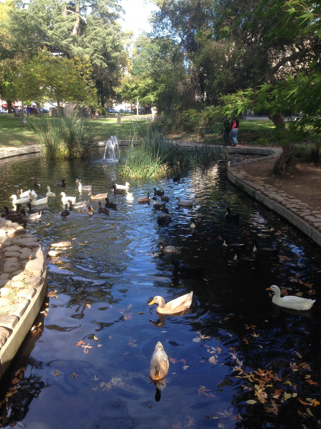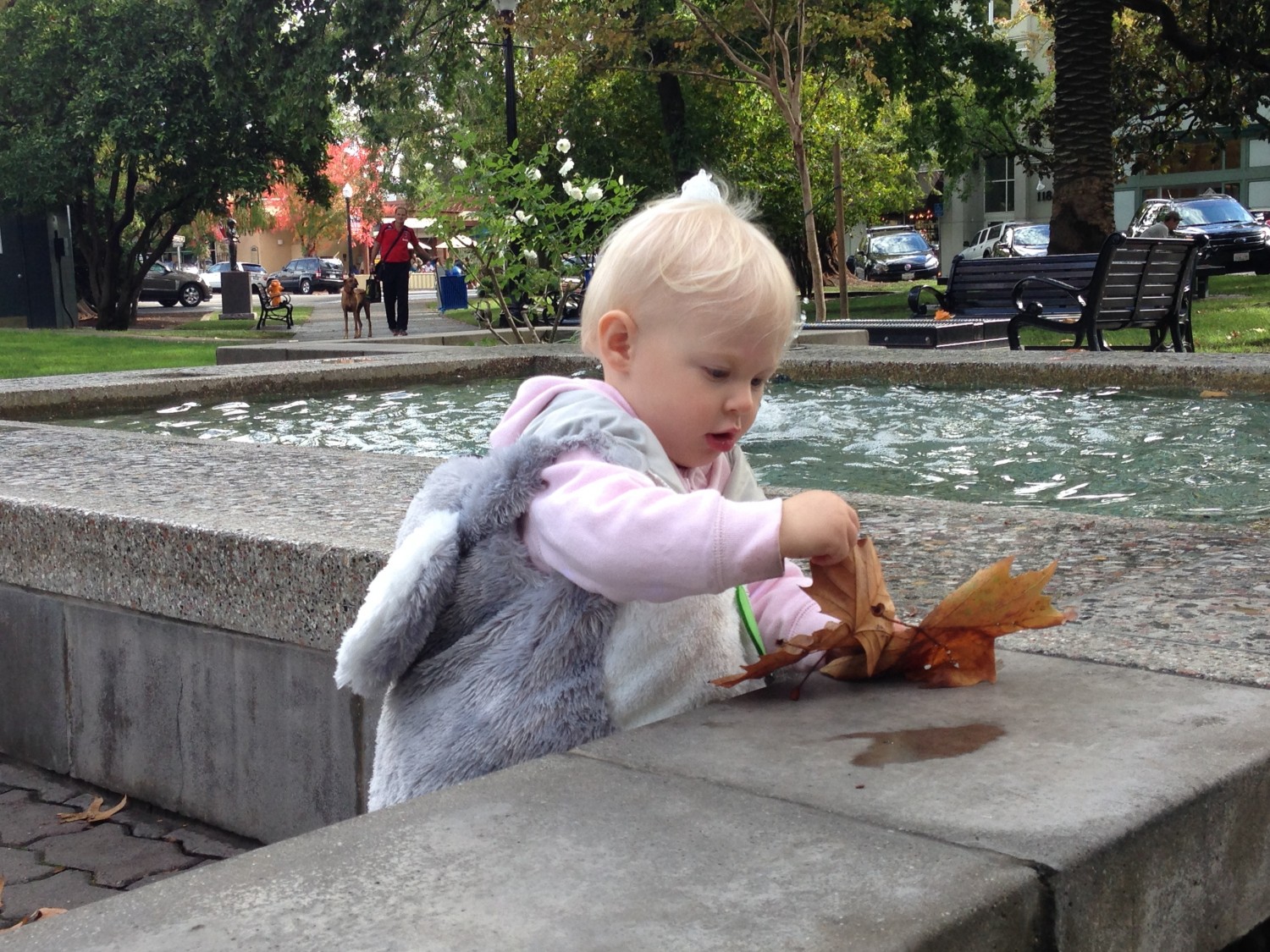 So, we hit up a small dog park near the square (Nixon found another energetic lab match), then wandered the square in its circumference, circled back to the playground and ended at the duck pond. We stayed long enough to enjoy an early patio side meal (lupper if you will), complete with baby in high chair and our personal hoover (dog) underfoot. The ambience was quite european, and with the sun shining, and a french speaking couple beside us we could have been across the pond.