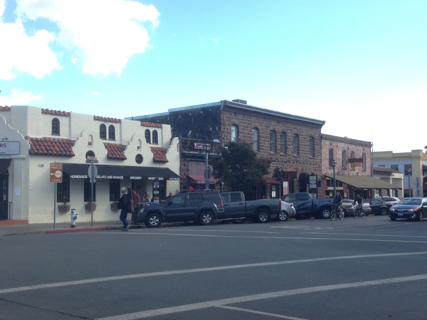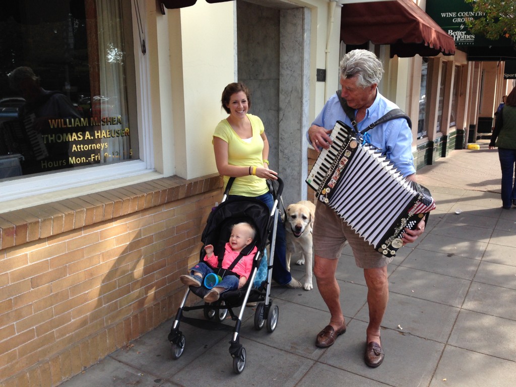 The architecture and building facade in Sonoma was indeed impressive, and the square was large and pretty, complete with duck pond and playgrounds (Rylie’s way of rating a town). There just wasn’t a ton of retail stores, and there wasn’t much for us to do there in a day. One side of the square was mostly museum, another good majority were restaurants and wine tasting. It’s tough to please everyone in our family as the dog can’t go in some places (he’s a bull in a china shop) and the baby doesn’t “belong” in others (wine tasting and fine dining). The cycling is also supposed to be world famous here, but I’m pretty sure taking the baby in the double chariot behind a downhill mountain bike along a hilly highway is not kosher.