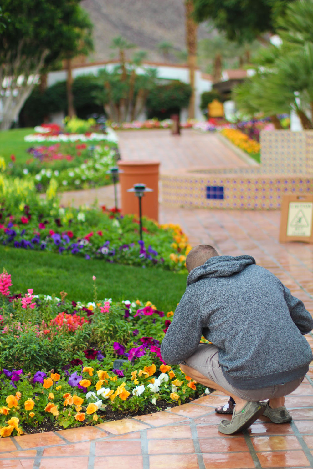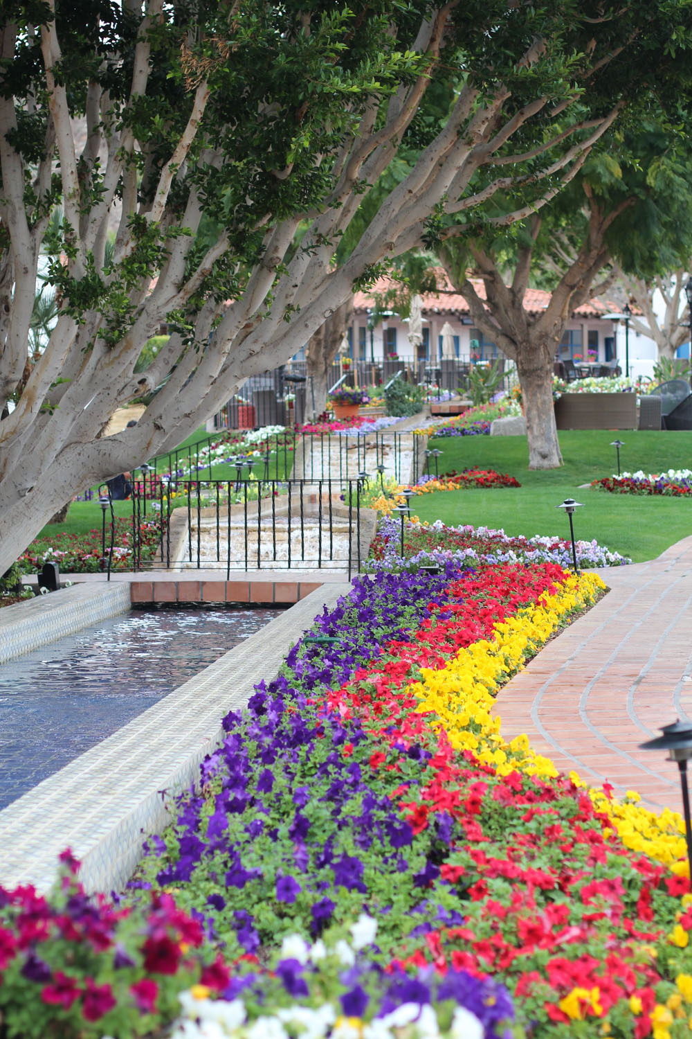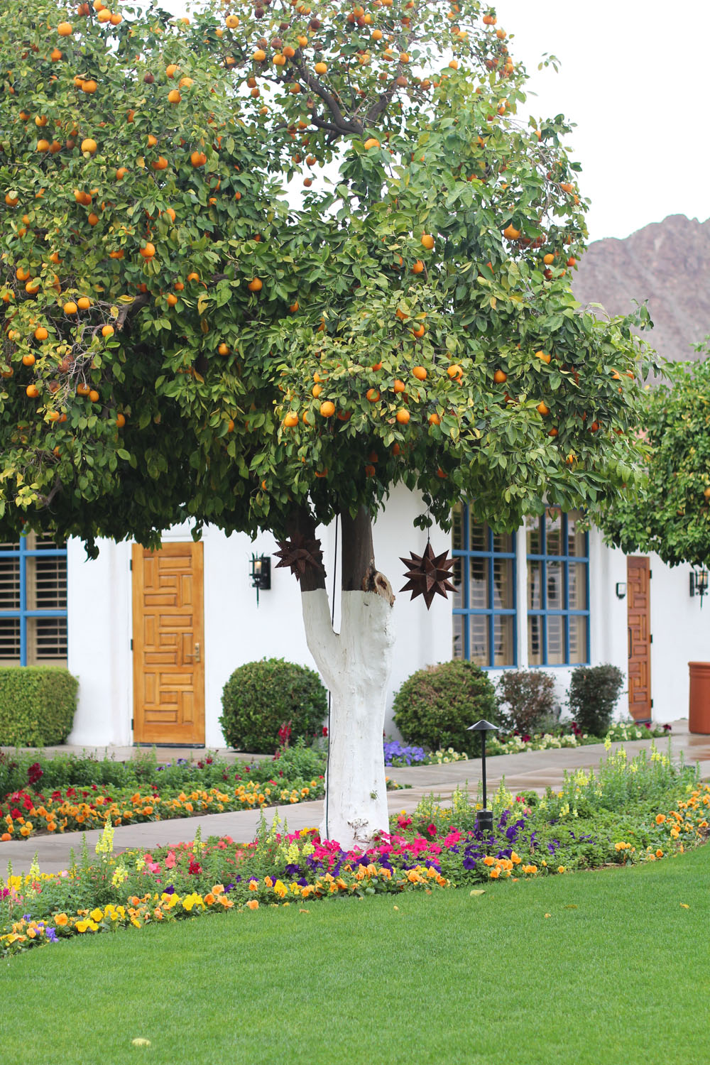 We made our way over to the La Quinta hotel/ resort next door. It’s was built circa 1920 and existed prior the city of La Quinta. Apparently it hosted a number of celebrities from the early 20th century. The grounds are beautiful, full of large fruit trees, fountains, and streams. Guests stay in adobe bungalows rather than the traditional stacked hotel. There are also an assortment of restaurants and stores onsite. We let Rylie loose on the place, and the combo of her and our dog garnered some attention.