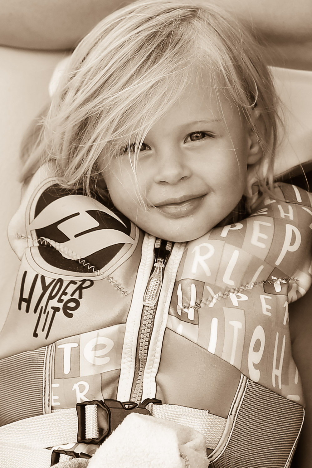 Here is a picture we took just prior to hitting the dock. Ry had to pee, and this is the best method we’ve established. Hold the legs up, lean back and go, reduces clean up and guarantees pee free clothes.