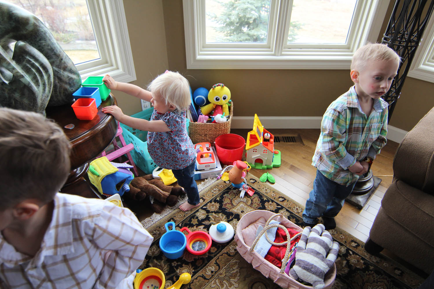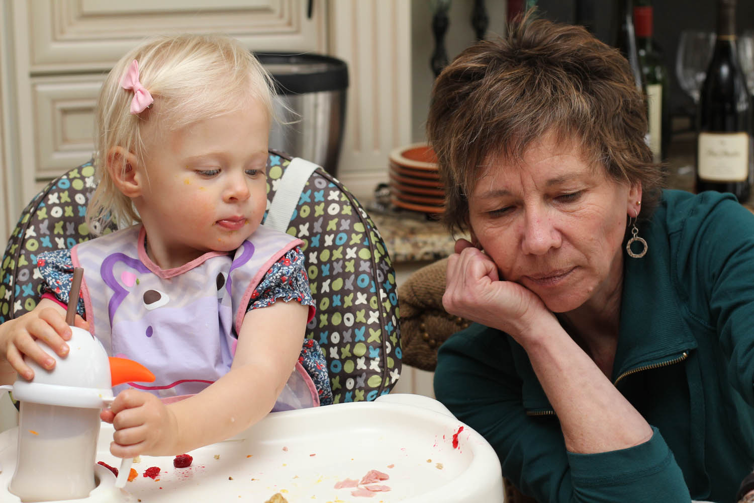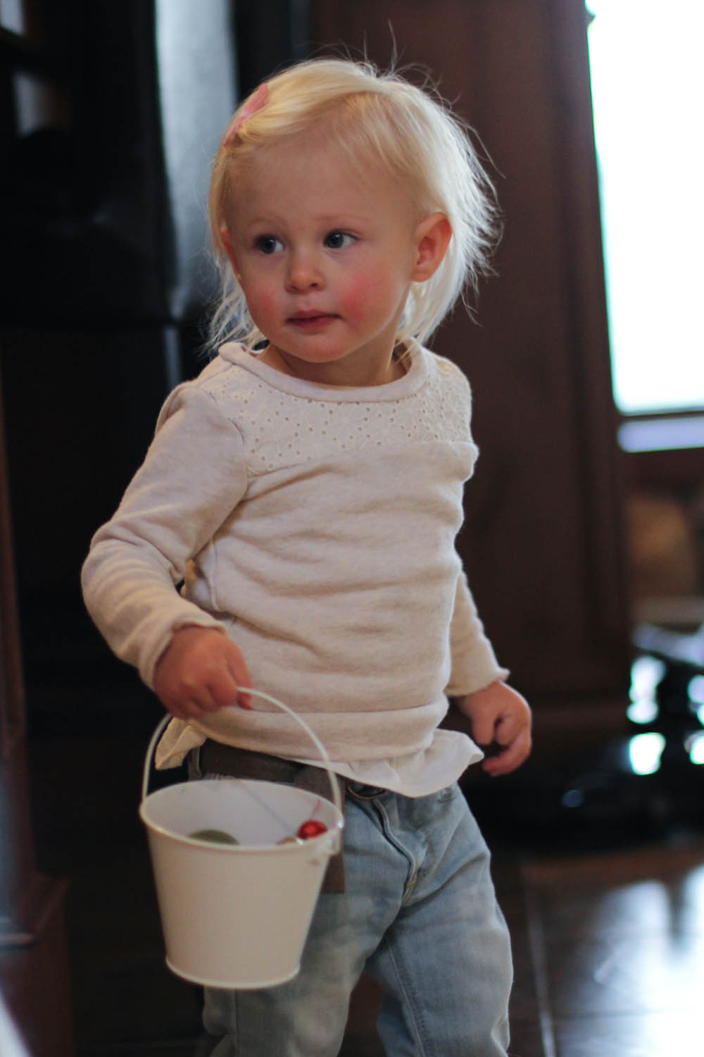 Sunday was busy, as we prepared to host 24 relatives at my mom’s place for turkey dinner and birthday cake. Ry did really well with the crowd and was only fly papered to me for the first hour, then she grew a bit of courage to explore with my cousins little guys (5 and 3), steal her Mr Potato from them, or hesitate to share her indoor slide. She was certainly popular at the party, and received boat loads of attention from her aunties and uncles alike.