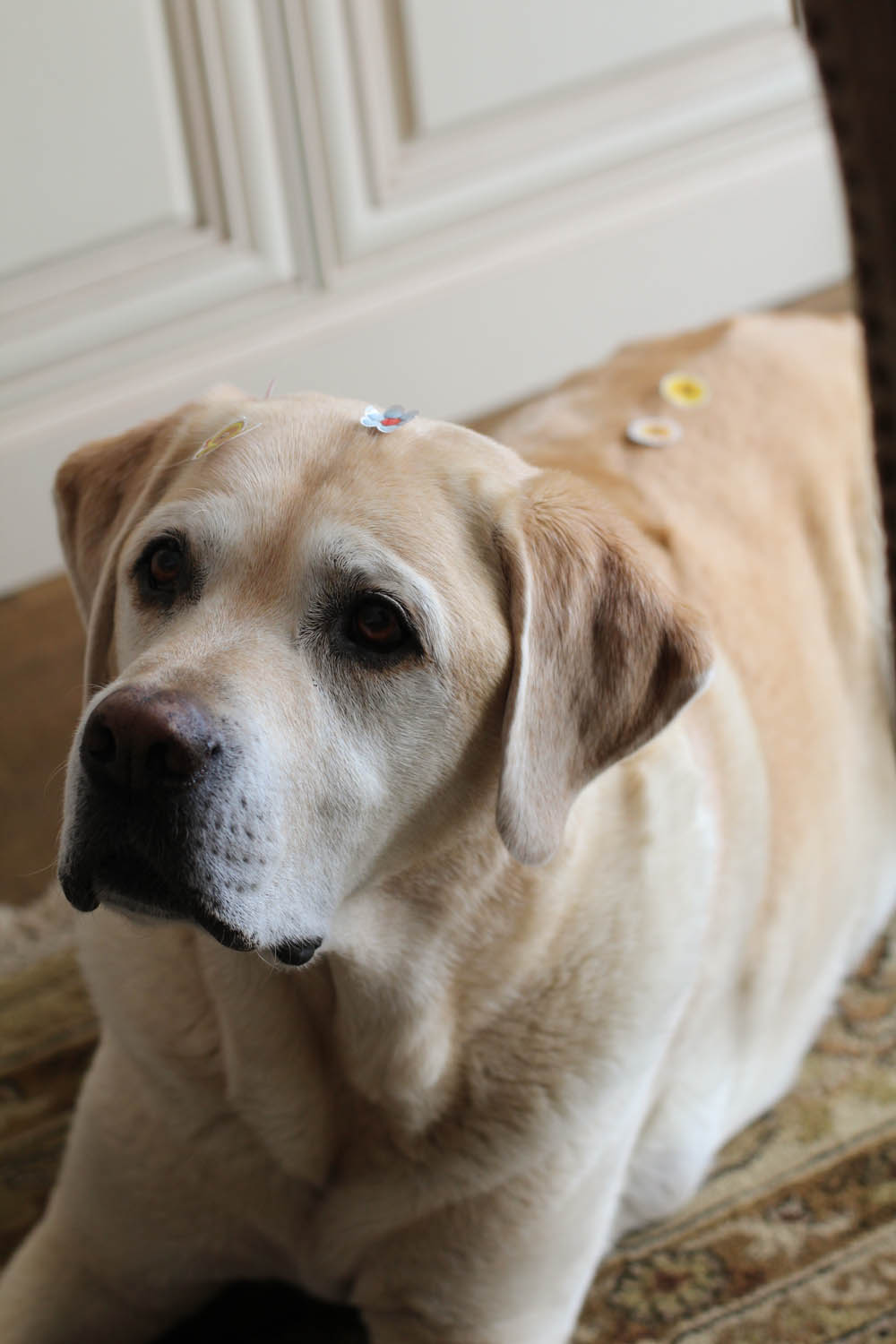 She then helped me open a BIG birthday present (a new fancy artisan paddle for our collection in Invermere) from grandma, and presented me with a homemade card that her and dad conjured up. It was beautiful and covered in stickers, which she proceeded to remove immediately once it was back in her hot little hands. I will save it forever as a memento of the 400 easter themed stickers that have been plastered on my body and clothing and grandma’s house in the last week. Most have become incognito until I am out in public then are discovered by myself, or worse, by others.