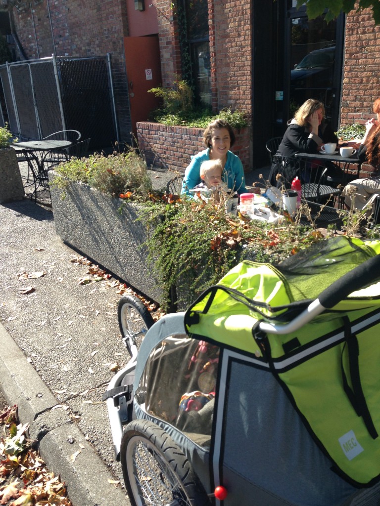 We have stooped, (yes, some days I feel that way) to letting her watch Sesame Street on the iPad, and now when she gets in the seat, she points at it. “Turn that on for me”. Oh boy! The only other way to keep her busy for longer than 10 minutes is to feed her tiny snacks, which, is actually a great time killer. About 30 minutes per snack to be precise.