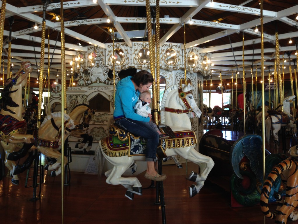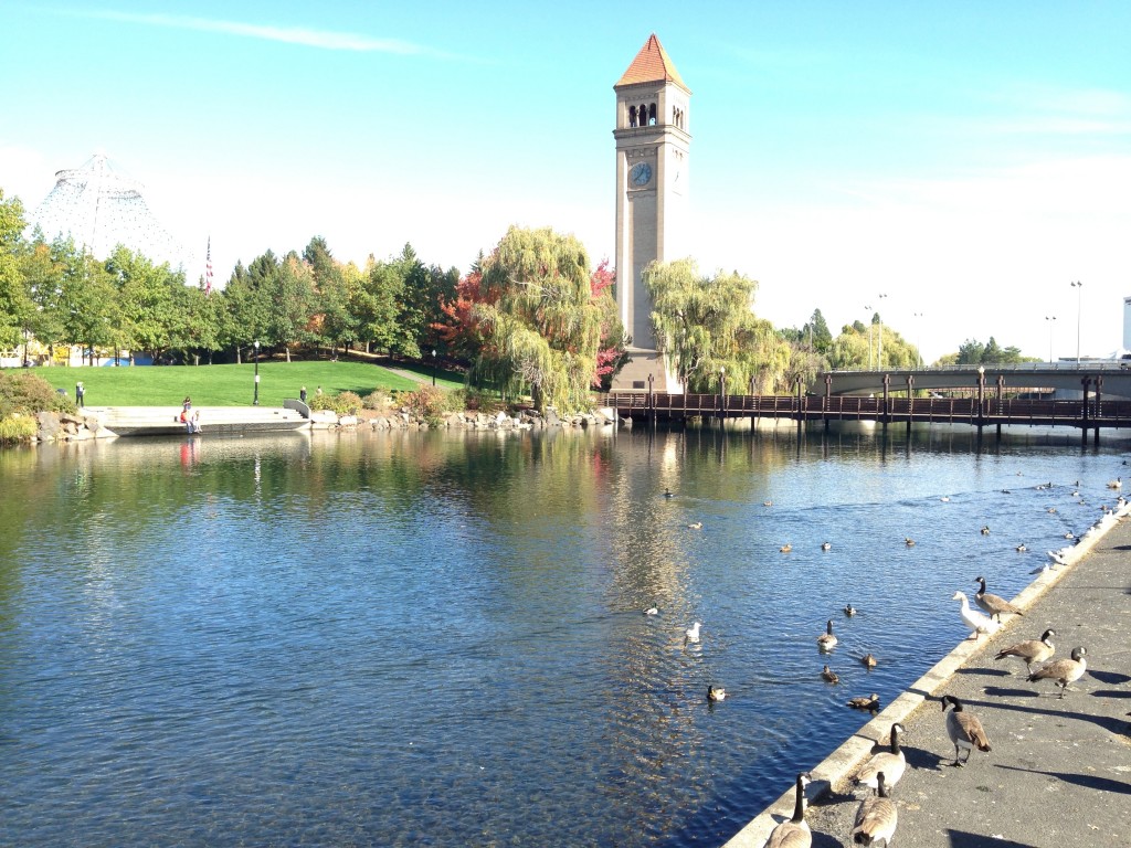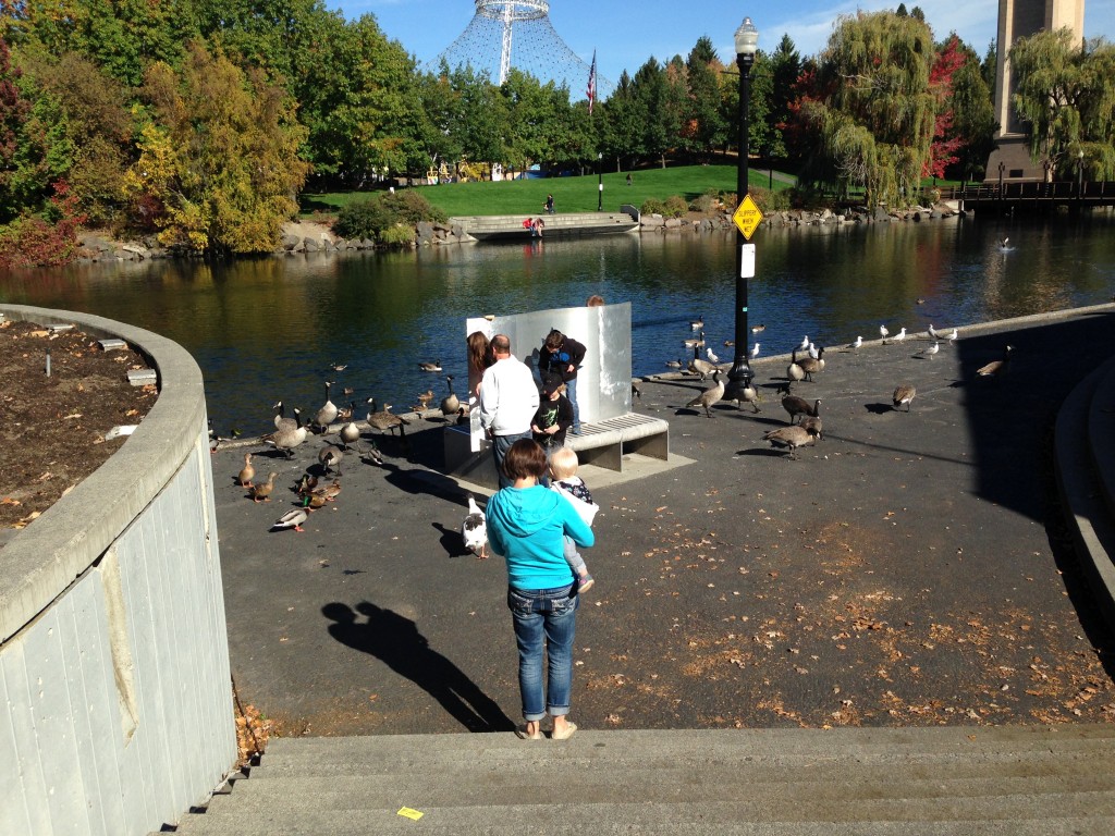 Exciting times, we decide to spend two whole nights in Spokane so we could check out the….wait for it…. the Carousel downtown. We chose the Alderwood RV park in Mead, WA because it had trees, and the ambience was better than Hi-dee-ho. The indoor pool and washroom facilities were pretty dated, but seemed clean enough, and we cared less as we turned on our water here. Once again close to a McDonalds and a grocery store, but not much else to walk to. We roamed the RV neighbourhood with our dog and our baby with her pink plastic push-jeep and marvelled at the beautiful fall leaves.