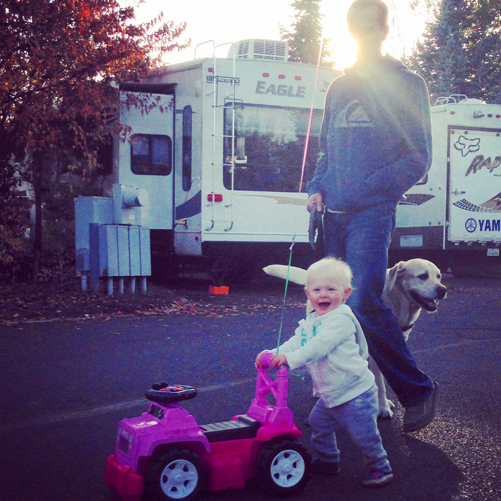 When we got back to the trailer, the little one already needed a nap, so we put her down before pulling out at the 11am check-out time. Of course it was a bit of a marathon nap, one you’d wish she would just take in the car so we could move on.