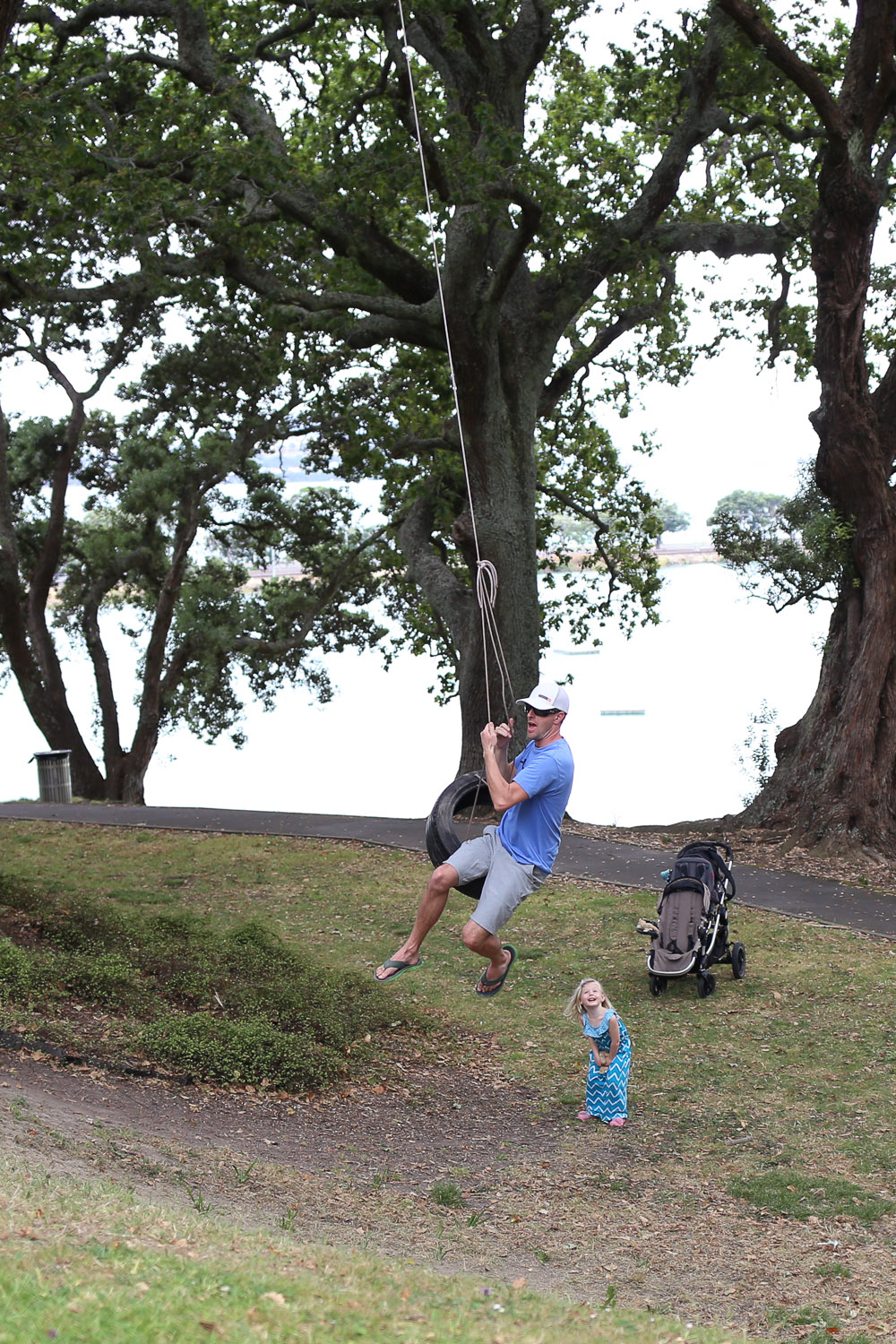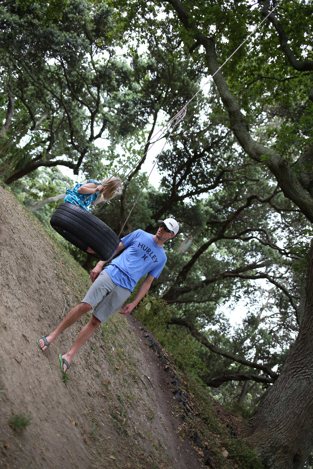 While inside the park we came across this killer tire swing. It wasn’t apart of a bigger playground structure, it was just a stand alone tire swing. I can’t image something like this would fly in a public park in Canada, someone would complain about its apparent danger. To be far though, it was a little extreme, and was positioned on a steep decline. When standing beside it, the tire was at eye level. Anyway, Ry and Josh decided it needed a go. I love the look on Ry’s face as Josh swings way out.