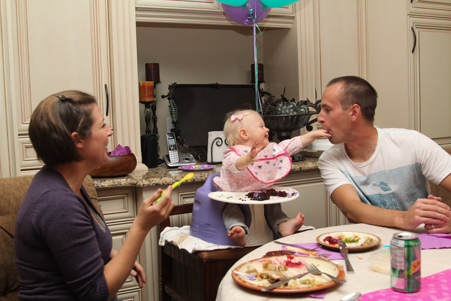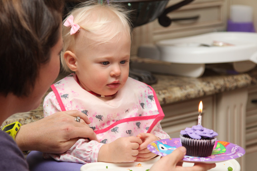 Despite feeling a bit rushed, and barely enjoying dinner the cupcake part went great. She loved it, and we got some great shots of the whole thing. She opened her gifts before dinner, thank goodness for that, and just like that it was over. I was stewing over the stupid food, but nonetheless I think down the road we will remember it as a great first birthday.