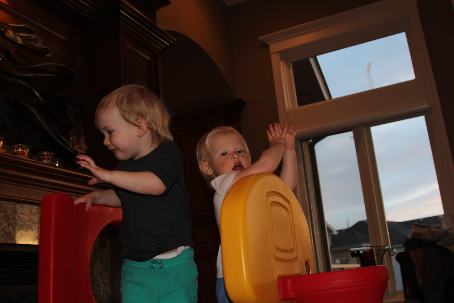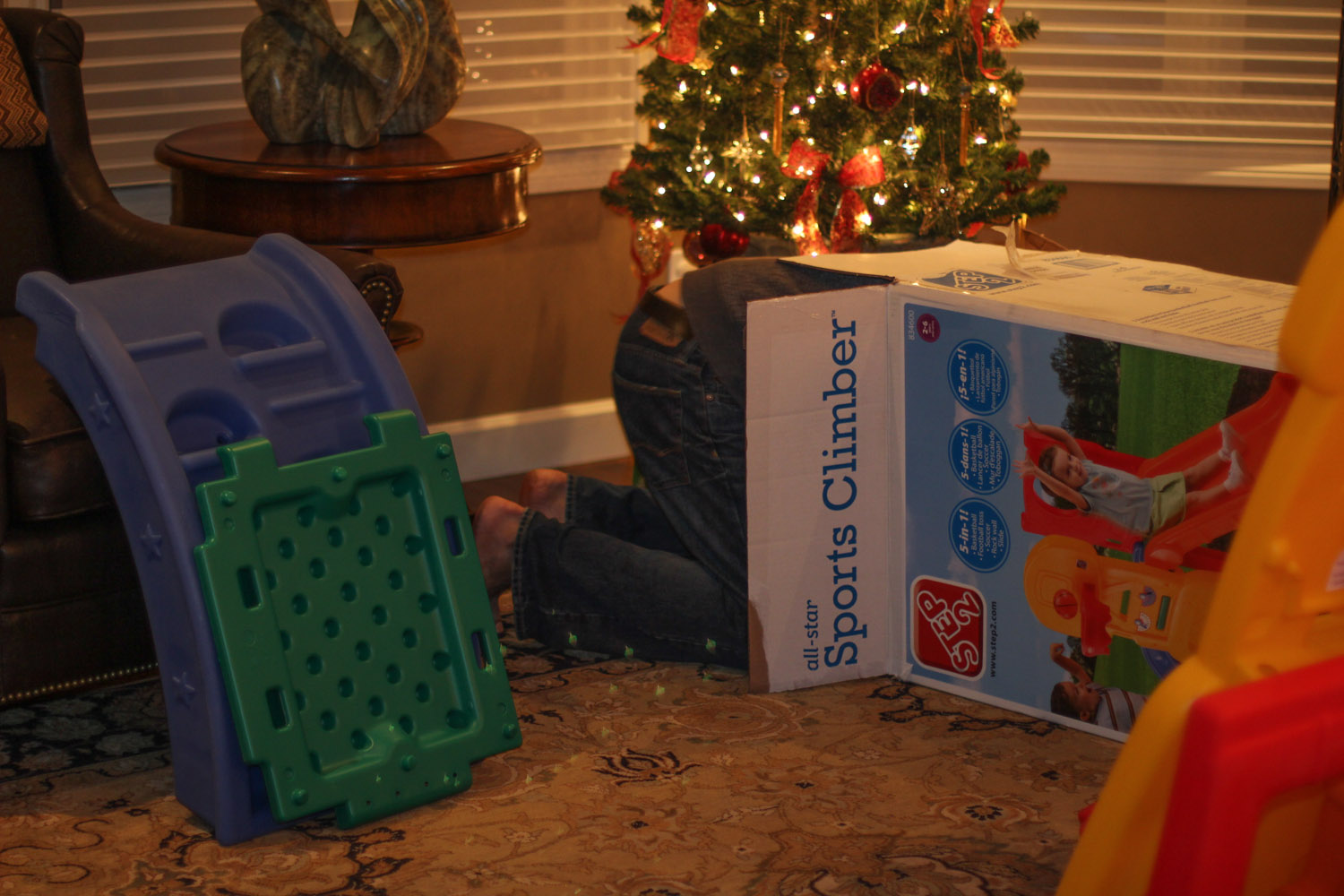 Shortly after arriving at Grandma Pats house, Josh was informed that he’d be assembling a new slide/climbing wall for Ry. Tomorrow is not Christmas, but our time is limited in Calgary so whats a couple days. The slide it way to large for our RV so she might as well get as much use out of it as possible. Once Ry was asleep, Josh and Grandma got to work. 15 minutes later, they had it in the house, out of the box and assembled. Pretty impressive.