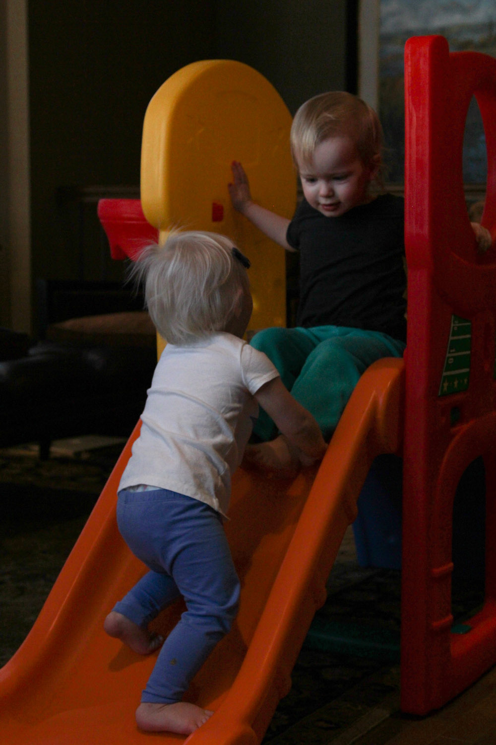 Later on in the afternoon, her cousin came to visit and together they tackled the ups and downs of the play structure. It was a blast to watch them interact and chatter back and forth. Its been a few months since they last saw each other, so it was a real catching up moment.