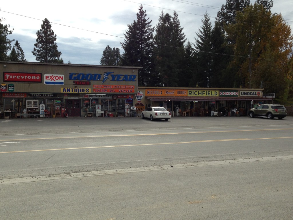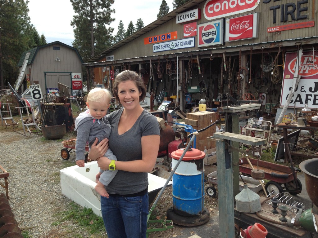 Next stop was Bonners Ferry, where Jocelyn had shipped a travel crib for Rylie to sleep in. I happened to be sized exactly to the dimensions of the bunks in our trailer. First we made a quick stop for a pee (nixon included) and checked out the local American Pickers location. Piles of vintage garb including rocking horses (Rylies favourite) and cool glass gas pumps (dads favourite).