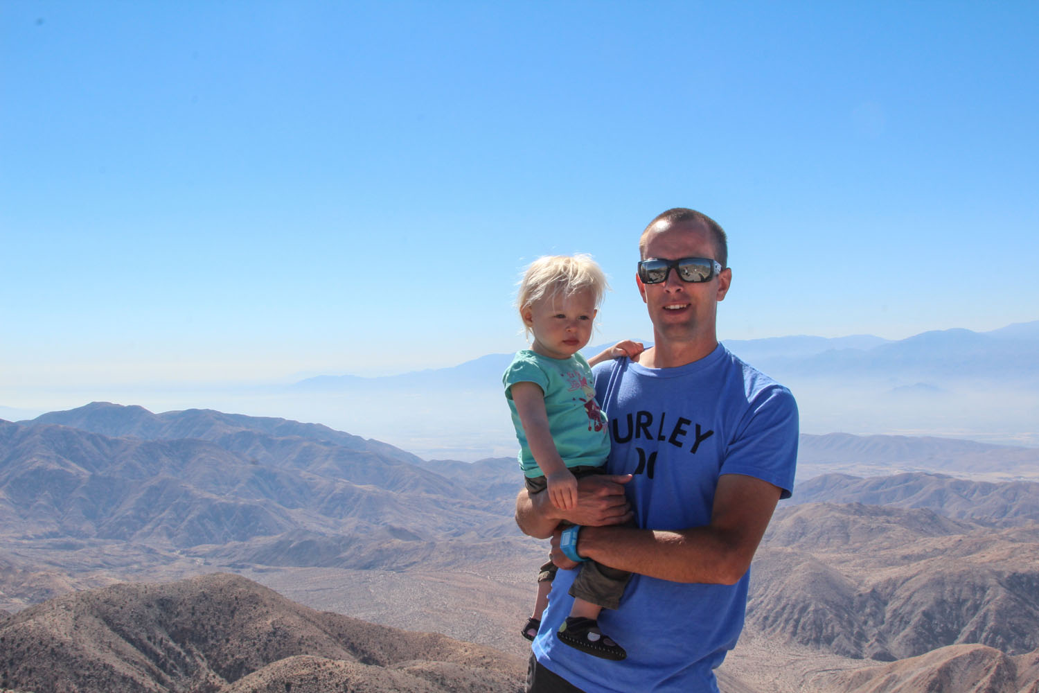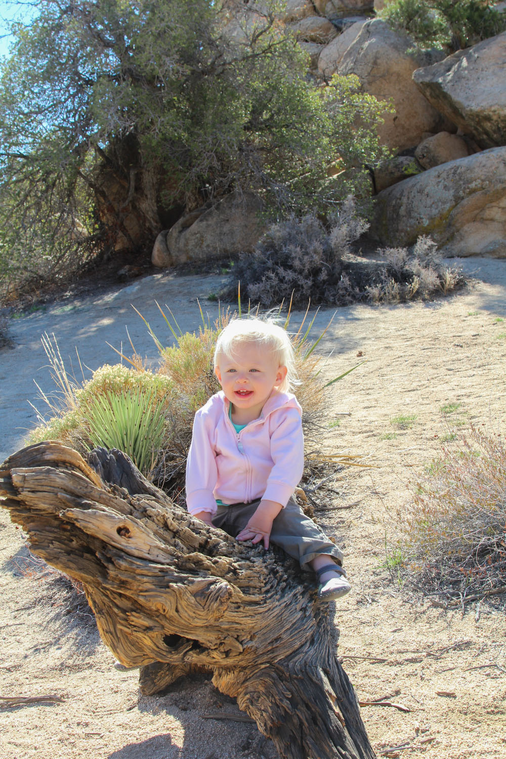 On the second day we did a shorter Hidden Valley loop, at just 1 mile long, it was nice and casual. We let Rylie out of her backpack and she proceeded to climb every rock, and ride every log along the way. That only lasted about 200 meters though, as we would be there all week at that pace. With a snack to bribe her back into the sack, we finished up before the sun was too hot and the bellies began to grumble. It was pretty, and much different than our journey the day before. From there we drove up to Keys Ridge which had an awesome 180 view of the valley below, including the entire Palm Springs area, and of course, complete with some not-so-lovely smog from L.A.